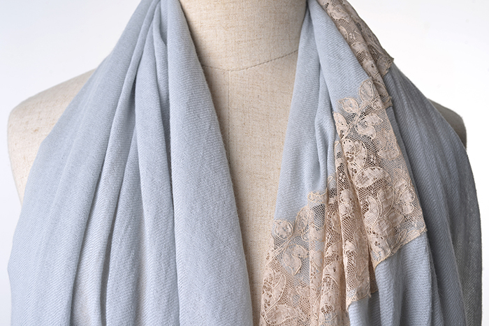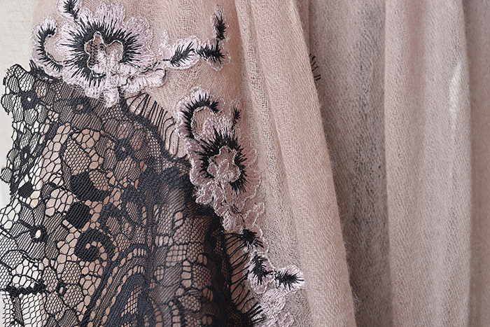 Each and every Cloudfairies lace scarves is characterised by its unique nature by combining delicate modern and antique lace and textiles sourced from around the world. As with all handcrafted products, the differences in texture, colour and embellishment are deliberated to make each item truly unique and one of a kind.